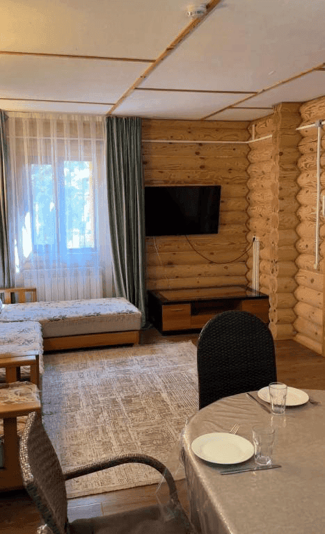 Бөлмеде жазық экранды теледидар бар, қонақтарға сүлгілер мен төсек-орын жабдықтары беріледі.