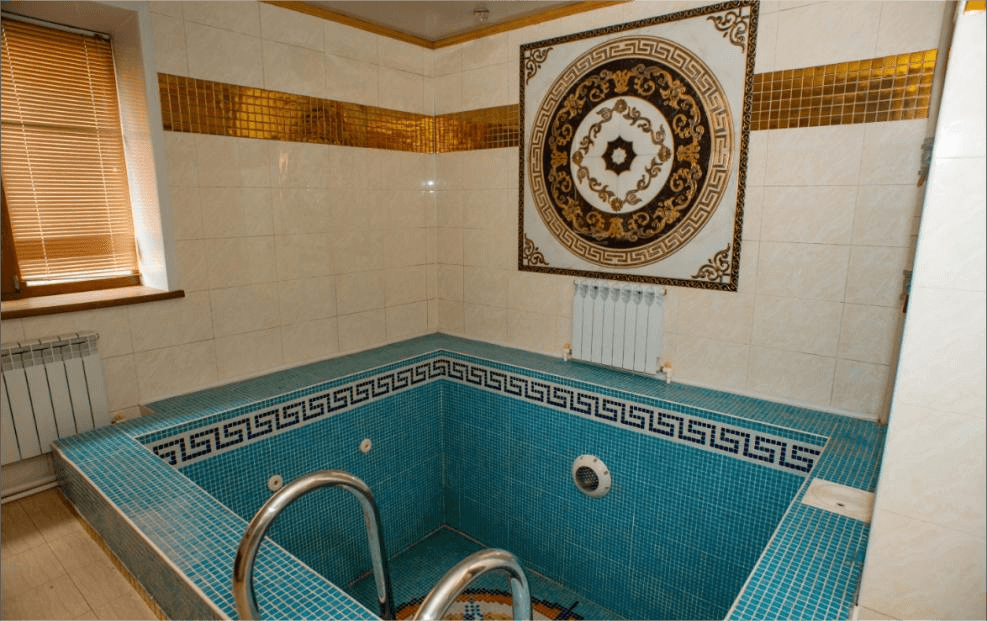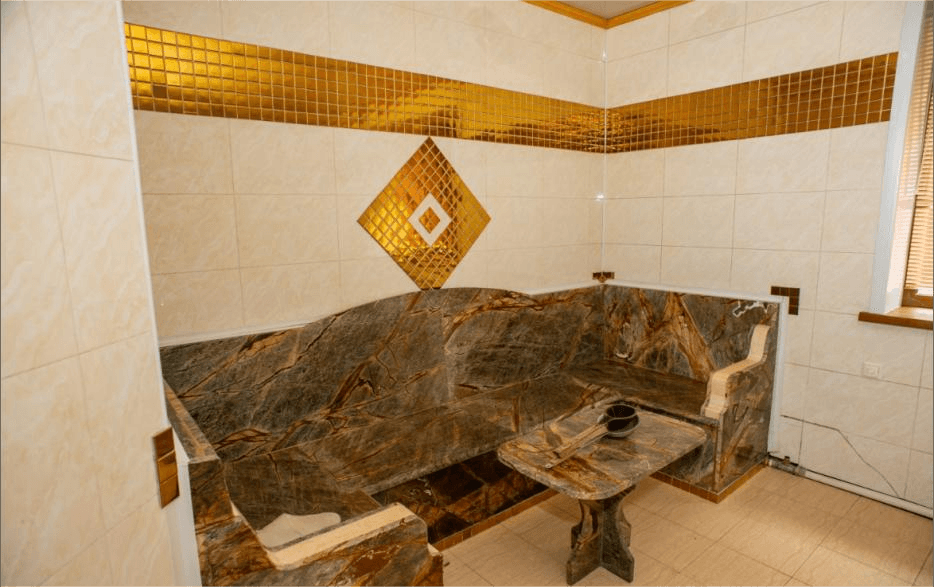- Сауна: Электр пеші, бассейн, демалыс бөлмесі, кір жуатын машина.